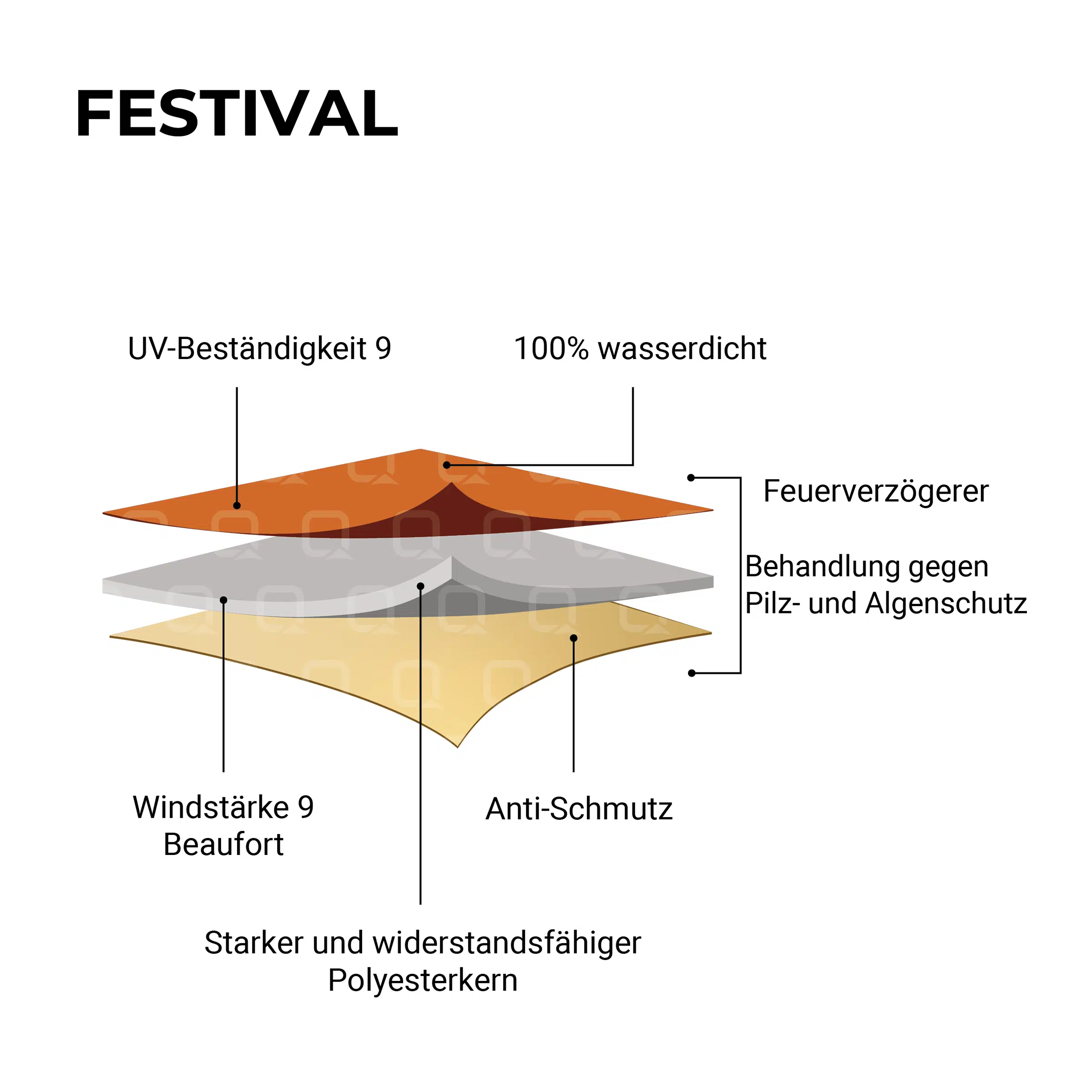 Die Festivalzelte wurden mit dem Ziel entwickelt, das Festivalerlebnis noch besser zu machen. Eine einzigartige Kombination aus Bewegungsfreiheit ohne Mittelmast, einfachem Aufbau und ideal für Besucher, die sich für einen Moment vor Regen oder Sonne schützen wollen. Die Festivalzelte von Qtents haben eine 100 % wasserdichte Beschichtung mit zusätzlichem UV-Schutz, sodass alle bei jedem Wetter geschützt sind.