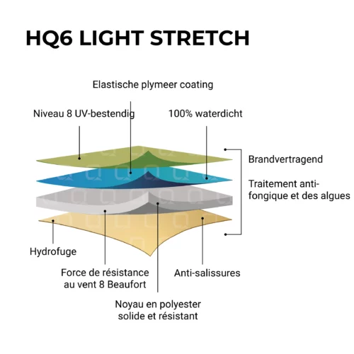Nos tentes sont fabriquées à partir de matériaux de haute qualité répondant aux normes les plus strictes. La toile est entièrement imperméable, ignifuge et pourvue d'un filtre UV. Pour garantir la durabilité, la toile de la tente est recouverte d'un revêtement spécial qui empêche la décoloration et la perte de qualité. Chez Qtents, nous allons plus loin dans la protection de votre investissement. La toile est imprégnée, à l'intérieur comme à l'extérieur, d'un revêtement spécial qui empêche les algues et moisissures d’y adhérer. Cela garantit un bel aspect à long terme de votre tente stretch, année après année.