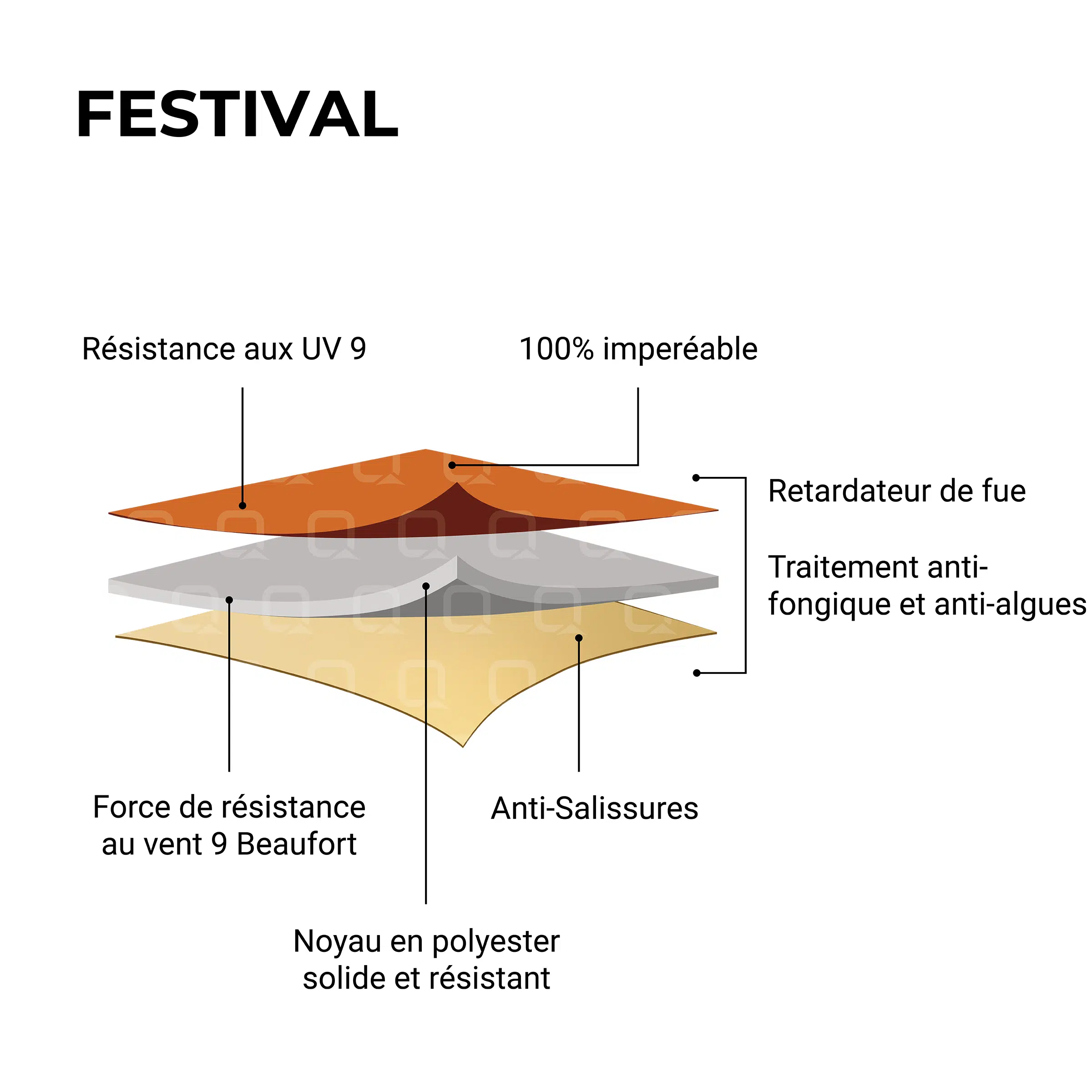 Nos tentes festival sont conçues pour optimiser l'expérience des festivals. Une combinaison unique de liberté de mouvement sans poteau central, facile à installer et idéale pour que les visiteurs puissent se mettent à l'abri de la pluie ou du soleil. Les tentes festival Qtents sont dotées d'un revêtement 100 % imperméable et d'une protection UV afin que tout le monde soit protégé par tous les temps.